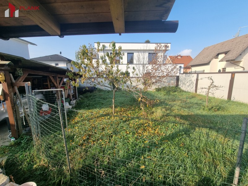 Das Grundstück mit Garten hat eine Größe von ca. 595 m², auf dem sich auch ein Carport befindet.